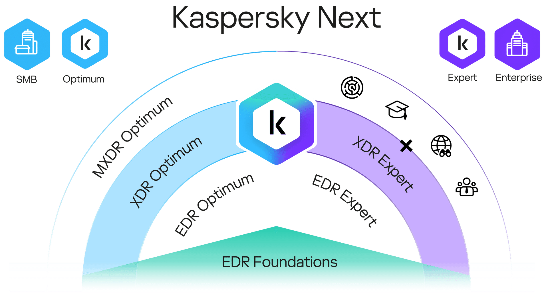 Kaspersky Next offre une sécurité à plusieurs niveaux pour renforcer votre sécurité à chaque étape de la croissance de votre entreprise, de la protection essentielle des terminaux et de l'EDR à la XDR avancée basée sur l'IA qui offre une cybersécurité totale pour une défense proactive contre les cybermenaces.